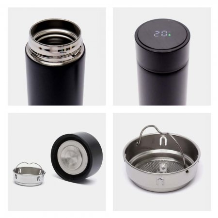 Double Wall Vacuum Insulation Stainless Steel Bottles with Smart Temperature Display and Tea Infuser 304 filter.