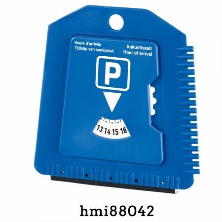 Plastic ice scraper with parking disk available only in blue colour.
