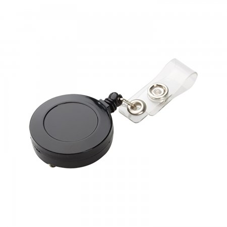 Round shape badge ski pass with holder clip and 80 cm cord available in 4 different colors.