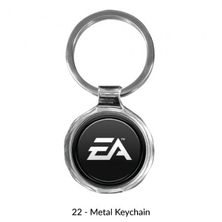 Promotional metal keychain with a great spot for engraving or digital printing with Epoxy/Doming effect.