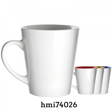 Ceramic white Coffee cup with with colored inside available in 4 different colours. Mugs are always usable and a great way to be remembered by your clients and customers.
