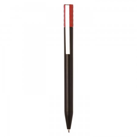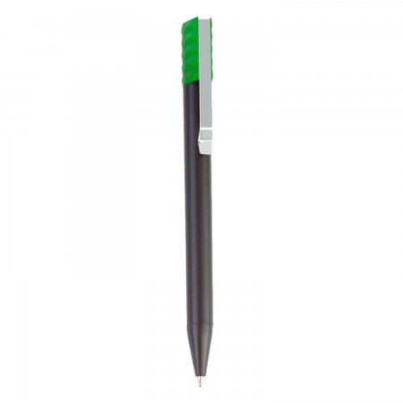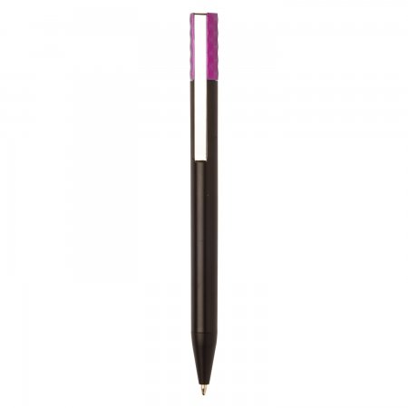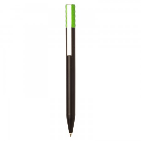 Promotional Black Plastic Ball Pens with mechanic rotation and black body, steel effect clip, comes with 9 different top colors.